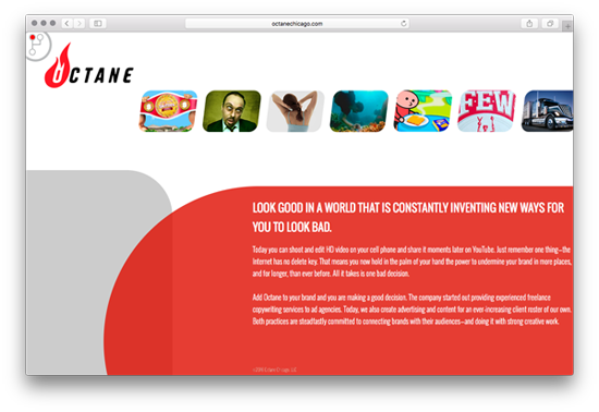 Black, white, and a little "Hot Rod Red" provides the maximum branding mpg for this Chicago based boutique advertising agency.